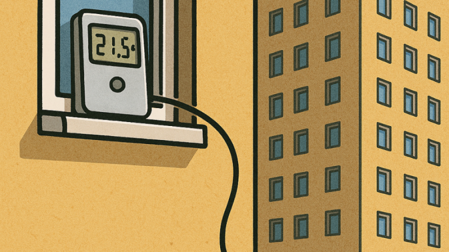 Termometer med sladd i fönstret? 09 oktober 2025 Termometergivare får inte hänga längre ut än till fönsterblecket. När de dinglar mot fasaden orsakar de skrapmärken på våra nyrenoverade väggar. Hjälp oss bevara husen fina!
